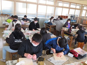 | 2月8日(月) 3年生はiPadを使って外国のことを調べました。もうすっかり使いこなしています。2年生は跳び箱運動です。ロイター版を使って力強くジャンプをしていました。6年生は卒業制作の思い出クロック作りです。彫刻刀を使って彫ったり、色を付けたりして、自分らしい作品をつくろうと真剣に取り組んでいました。 |