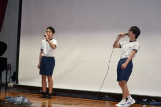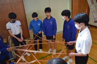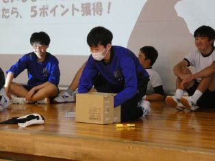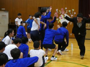 | 午前中3時間かけて1年生の学年レクが行われました。劇あり、スポーツあり、クイズ大会ありと、実行委員が中心となって、みんなが楽しめる企画を計画、準備して運営しました。特にクイズ大会では、スライドなどからこれまでの思い出を振り返り、とても盛り上がりました。年度の最後にすてきな思い出ができました。 | ||