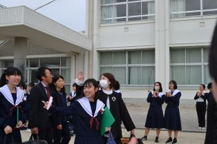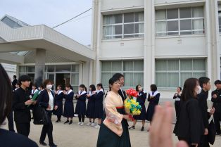 FAMILIE」を実現させた素晴らしさについてのお話がありました。式の後半では、在校生、卒業生が向かい合いこれまでの感謝の気持ちを代表生徒の言葉や合唱でを伝え合いました。卒業生の代表からは、在校生だけでなく、お世話になった先生方や地域の方々、とりわけ保護者へ涙ながらに感謝の言葉を伝える場面では、会場の多くの方々の涙を誘いました。最後に卒業生、在校生、保護者、来賓全員で歌った三好中学校の校歌が体育館全体に響き渡り式が終わりました。まさに卒業生と在校生が目標にしてきた「歴代最強・最高の感動的な」「あたたかい」卒業式になりました。 卒業生のみんさんご卒業おめでとうございます。次のステージでもみなさんらしく持ち味を発揮して輝いてください。 ご臨席いただいた来賓のみなさまありがとうございました。 保護者のみなさま、お子様のご卒業、おめでとうございます。これまでの本校の教育活動に関してご理解・ご協力いただき本当にありがとうございました。今後も三好中学校をよろしくおねがいいたします。 |