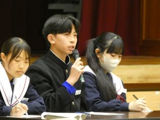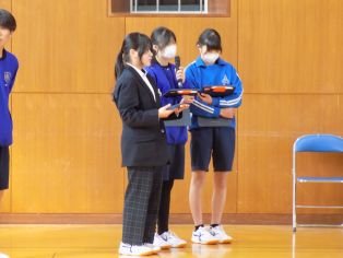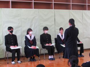 | 午後に来年度全校生徒をリードする生徒会役員の立会演説を兼ねた討論会が行われました。討論の主なテーマは、今後の三好中学校をより良くするためにできることなどでした。どの候補者も全校をまとめていこういう意欲があふれ、三好中をさらによく、発展させていくための前向きな意見を積極的に発表していました。フロアで聴いている生徒もしっかりとした態度で会に臨むことができました。その後、投票、開票作業が行われました。立候補者のみなさん、選挙管理委員会のみなさんお疲れさまでした。 | ||
