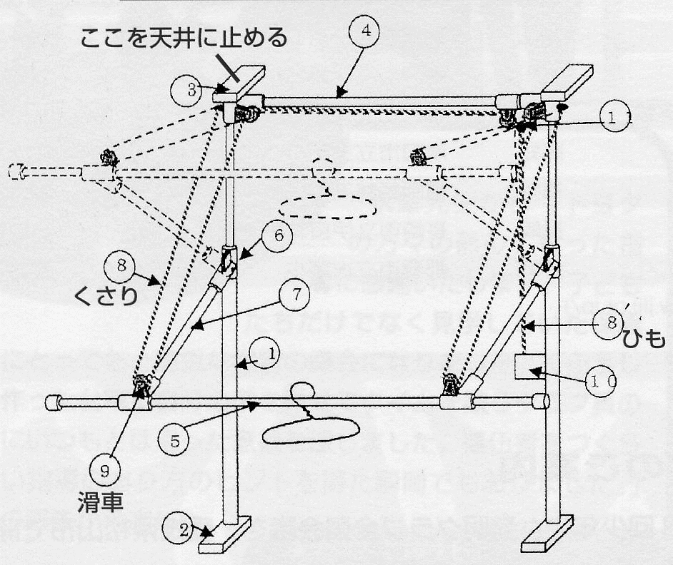 これによって物干し竿が安全でしかも簡単に上下できるので、体の不自由な人でも洗濯物を楽に干すことが出来る